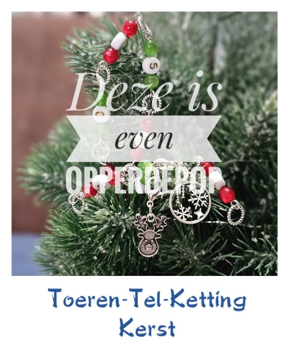 Tot slot de toeren-tel-ketting Tijgeroog, op de foto staan er twee. Twee zó verschillend, toch zijn ze met dezelfde kraal gemaakt. Het verschil is dat de ene goudkleurig met zwarte cijferkraal is gemaakt, de ander zilverkleurig met een witte cijferkraal. Ook deze TTK’s zijn te gebruikten tot en met naald 6,5 en kosten € 17,50 per stuk.