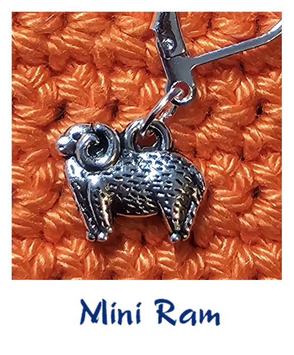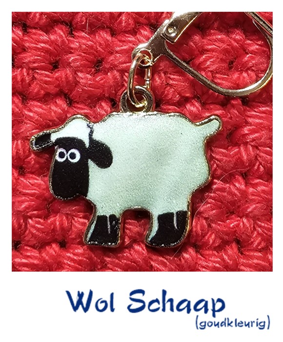 Eerst alle schaapjes maar op het droge 🙃 Het setje drie kleurige schaapjes (€ 3,50, per setje) is geëmailleerd op een goudkleurig ondergrond, net zoals het Wolschaap (€ 1,25/p.st.) ze zijn net zoals Schaapje, Heideschaap, Lammetje en Cartoonschaap (€ 1,00/p.st. – allen zilverkleurig), te gebruiken vanaf standaard garendikte, de laatste, Mini Ram, is al te gebruiken met de dunnere draad.